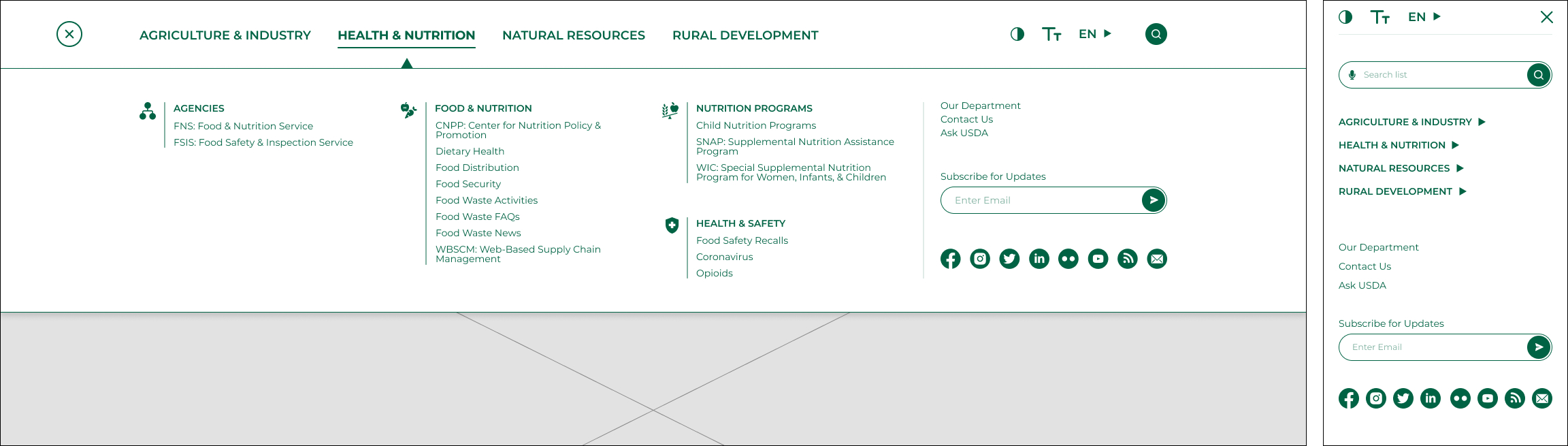 I was honestly kind of scared to tackle this project in the beginning because of how overwhelmingly huge the USDA website is. I had to constantly think about what the users needed out of the site to help me prioritize where my efforts went. For example, as part of making the redesign more accessible, I added toggle options for high contrast, font size, and language in the main menu. As much as I wanted to implement those toggles in the prototype, however, they just weren't needed for achieving the project's goal within the timeframe. I would love to have fleshed out that portion if I had more time though!