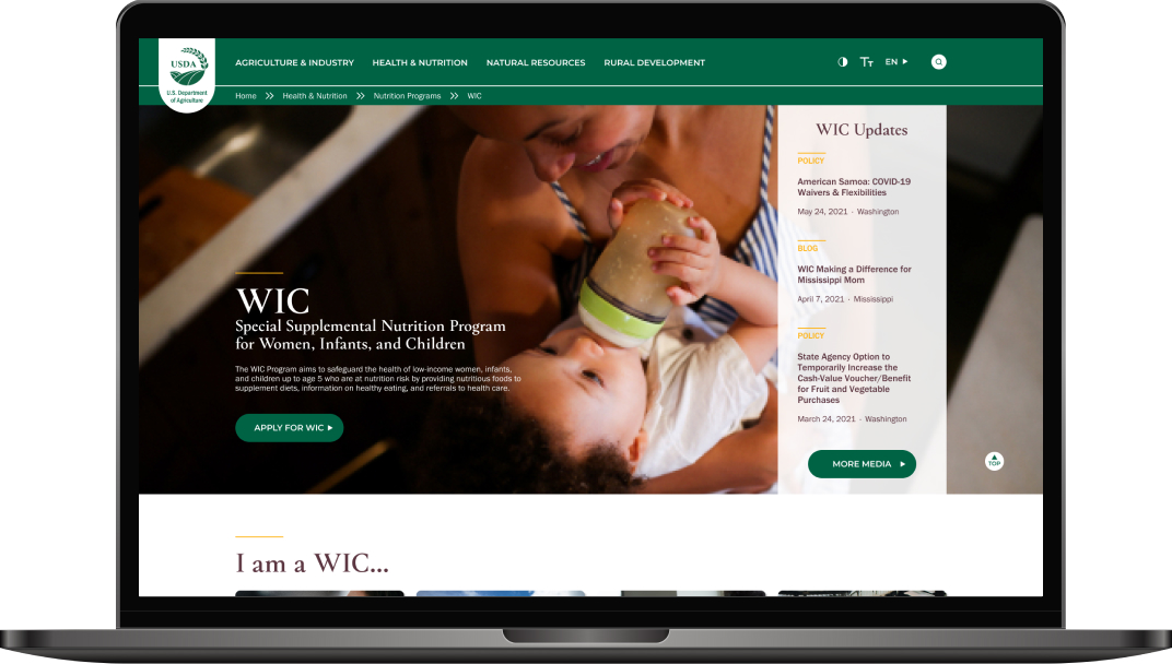 I turned the user groups into cards to serve as the main page content for the USDA homepage and WIC homepage. I also used cards to organize application information on the WIC application page. This way, users could see relevant information in one click instead of searching through blocks of text.